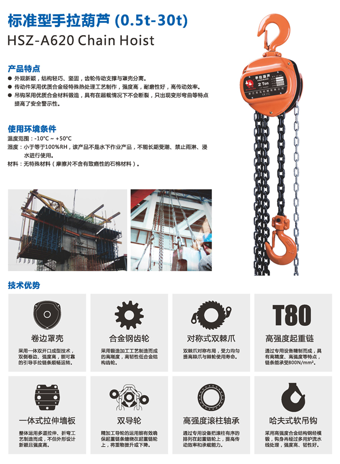 8.起重鏈條是特殊合金鋼制作并經(jīng)過熱處理,不能私自進(jìn)行焊接或改裝。