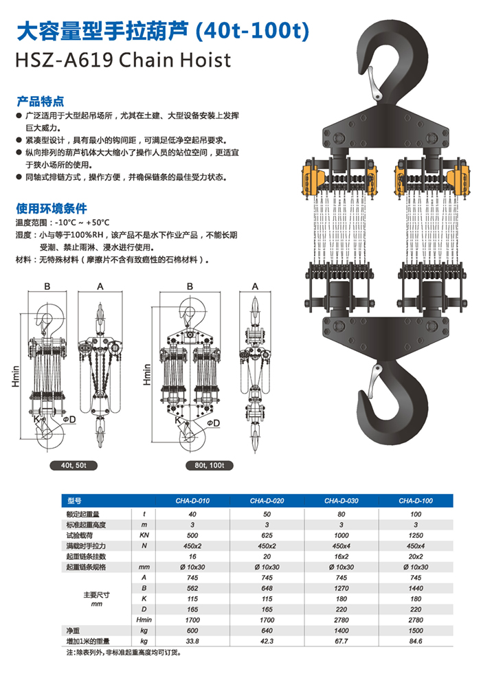 8.起重鏈條是特殊合金鋼制作并經過熱處理,不能私自進行焊接或改裝。