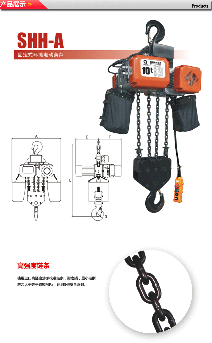 8.起重鏈條是特殊合金鋼制作并經(jīng)過(guò)熱處理,不能私自進(jìn)行焊接或改裝。