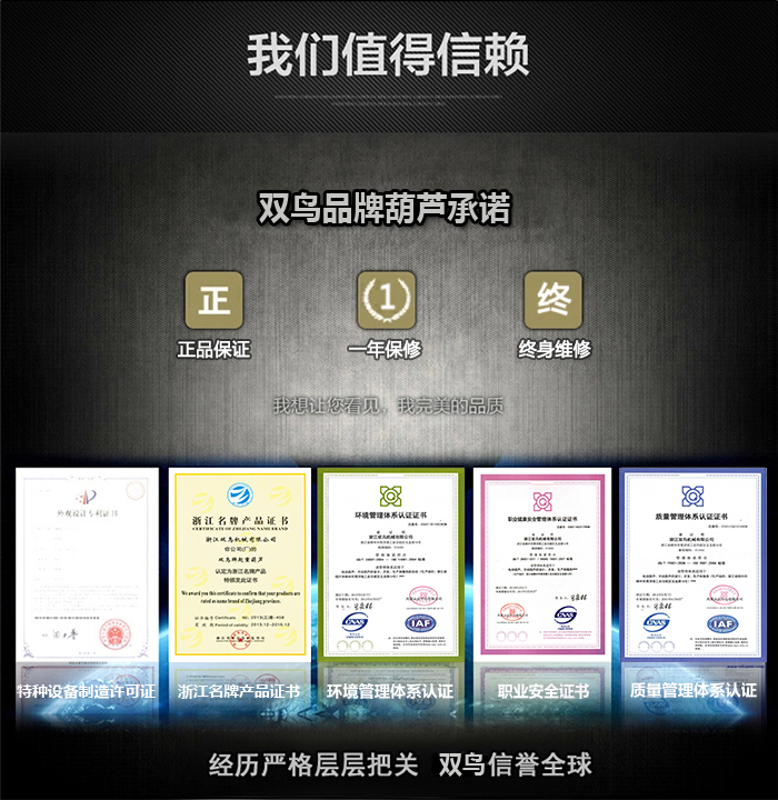 8.起重鏈條是特殊合金鋼制作并經(jīng)過(guò)熱處理,不能私自進(jìn)行焊接或改裝。